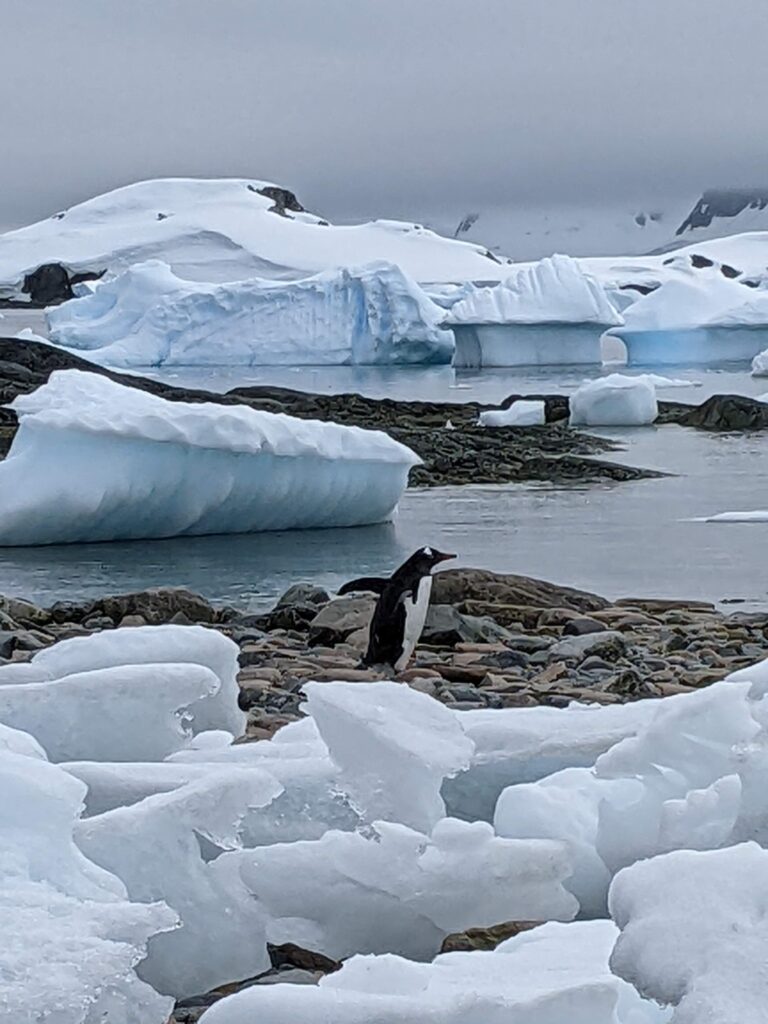 There are no penguin rookeries in this area, but we did see a few of the little guys. We also learned that a group of penguins in the water is called a raft of penguins and a group of penguins on land is called a waddle of penguins or a tuxedo of penguins. We also learned that the Mandarin word for penguin translates as “business goose.” I almost died when I heard that!