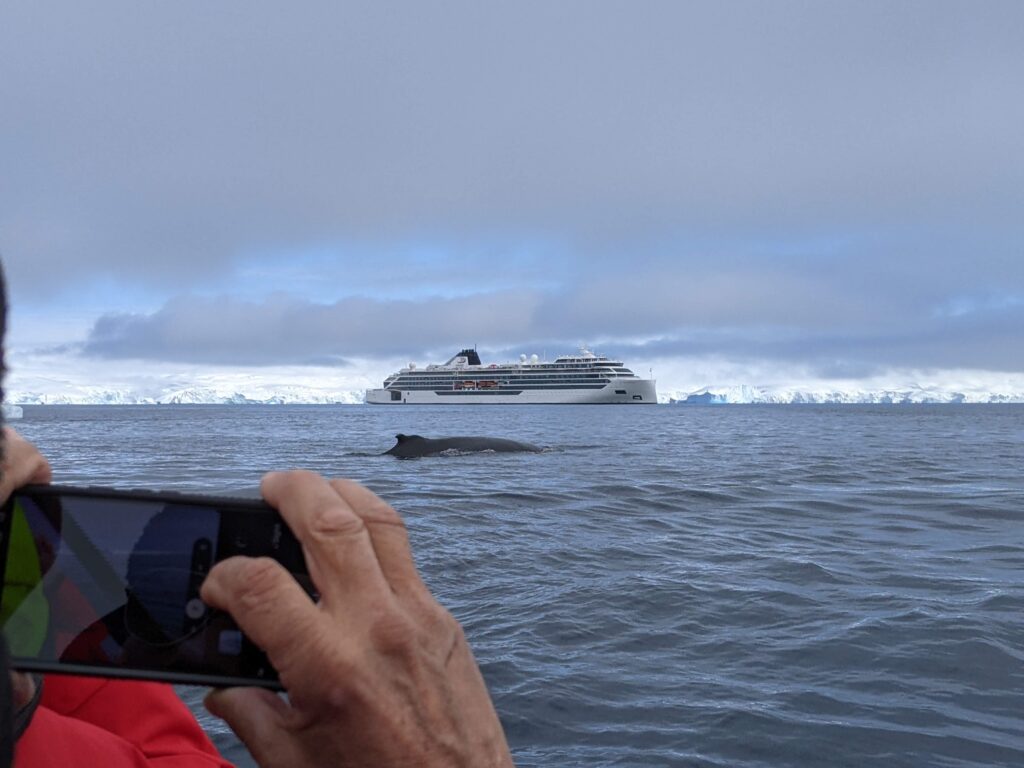 The second time the whale surfaced in front of our zodiac, this time a little farther away
