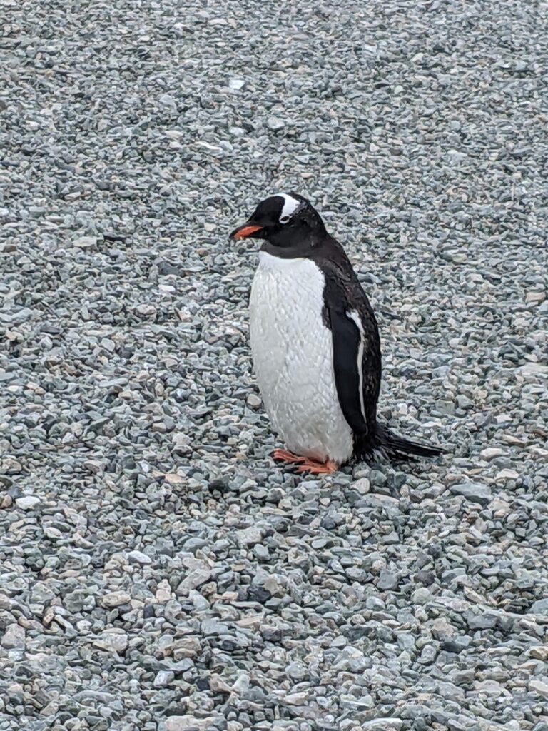Our zodiac excursion took us to a rocky beach, and there were penguins there to greet us. In fact, one started to waddle towards me, and I had to back up to maintain my distance as it came within five feet of me.