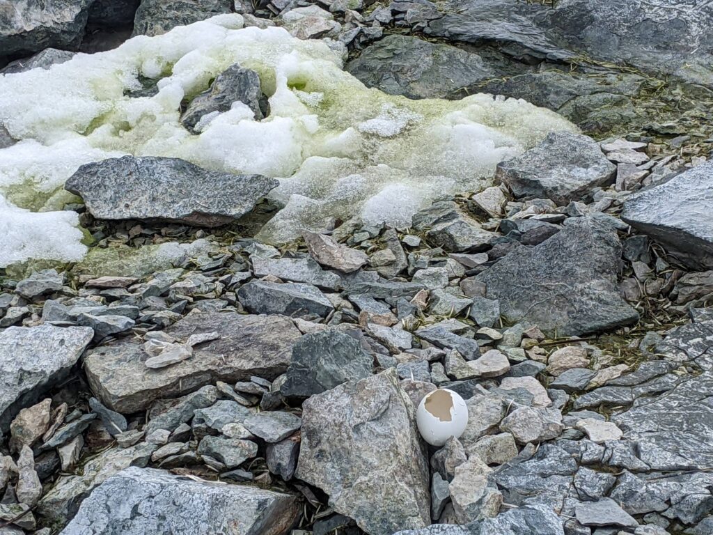 We did see a couple of empty egg shells where predator birds had eaten the babies. We also saw a few penguin skeletons where seals had been feeding. Circle of life.