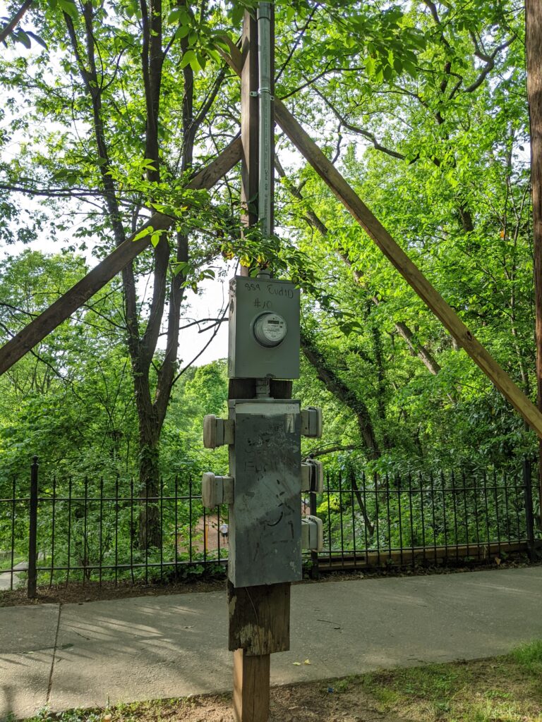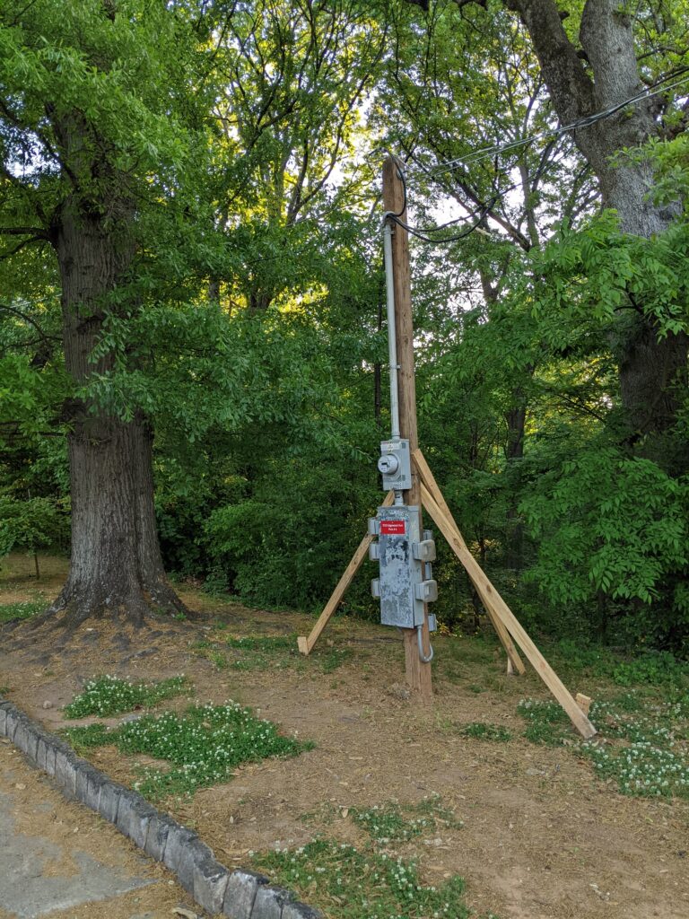 About 6 weeks before the event, the temporary power poles are installed. These are used by the music stages and some of the food vendors.
