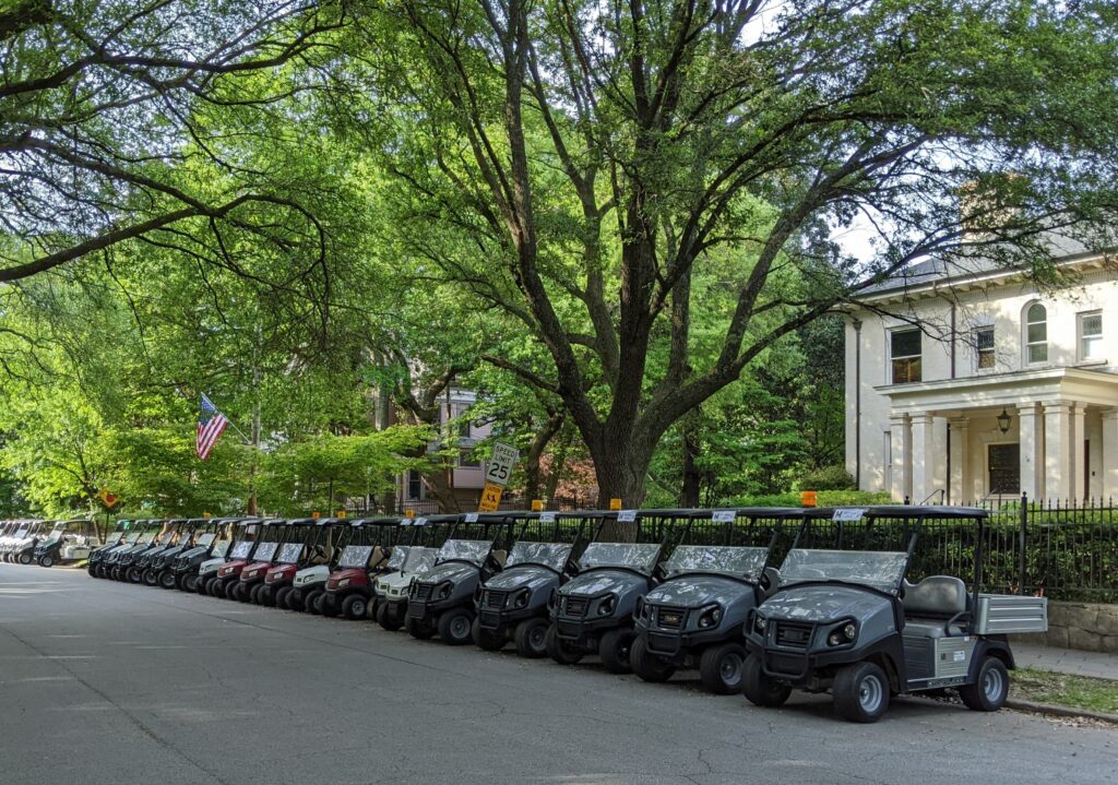 A couple of days before Festival, the golf carts are delivered. Since the area becomes a car-free zone during the festival, golf carts are used by the staff and volunteers to deliver ice, to take away trash, and to run other errands.