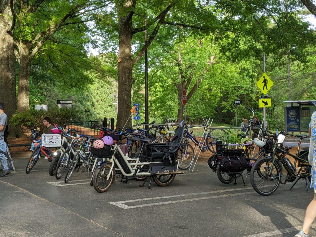On the Friday of Festival weekend, the music tents go up, stages for the musicians are erected, and chairs for the audience are set up. Bike racks are arranged at the bike valet stations for guests who arrive on bicycle.